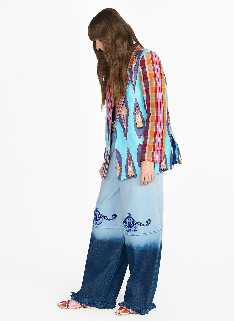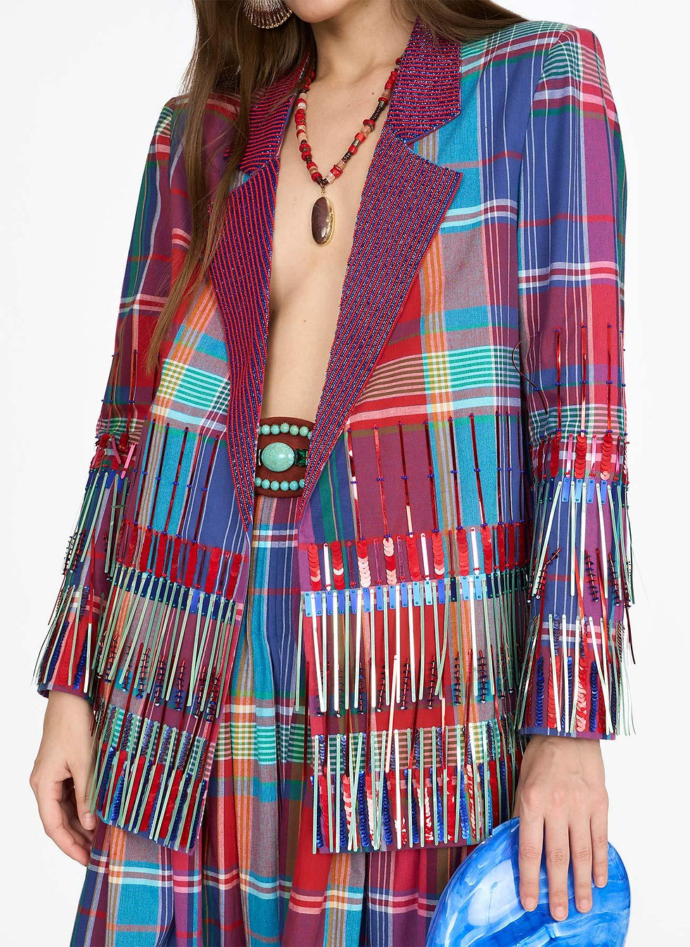 The Ikat And Checks Hand Emb Blazer